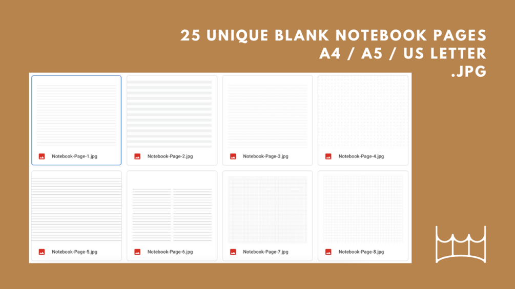 25 Unique Blank Notebook Pages (A4, A5, and US Letter JPGs)